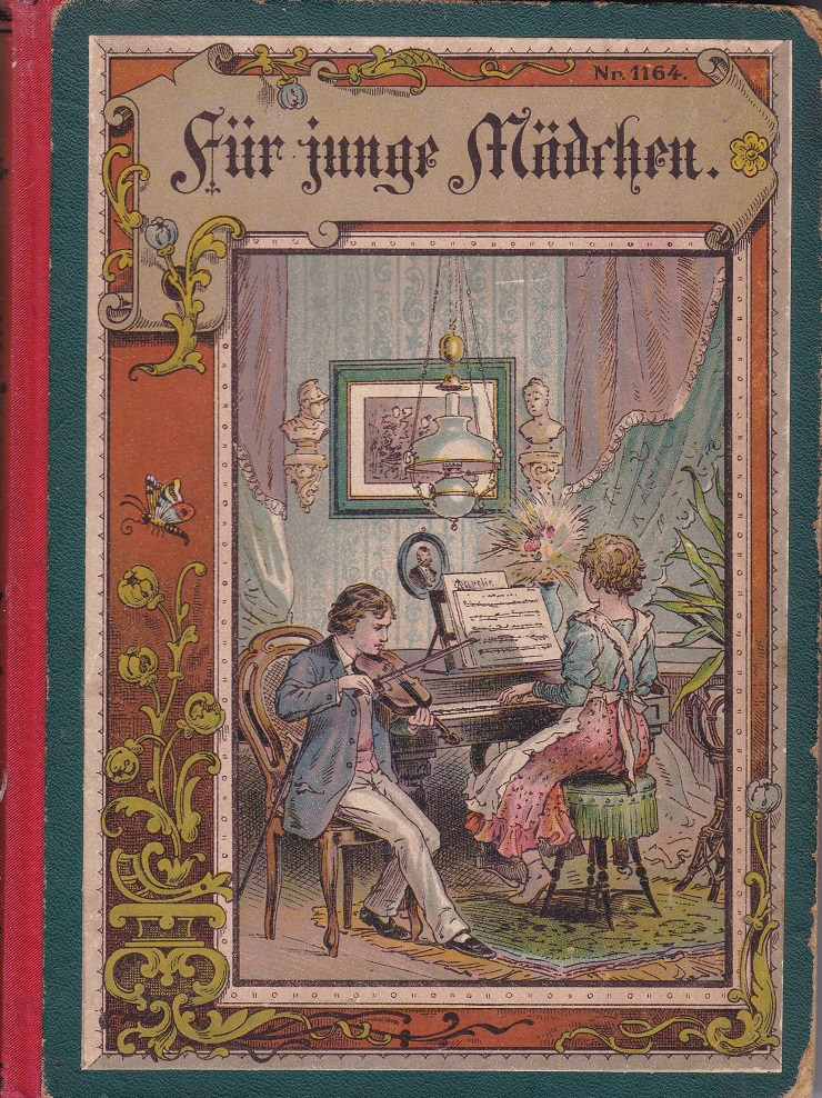 SPRENGEL, Klementine / Karl CASSAU: Für junge Mädchen. Erzählungen. Mit vier feinen Farbendruckbildern nach Aquarellen von W. Schäfer. Wesel: Düms. o.J. [1899]. 120 S. Original Halbleinwand mit Rückentitel und farbig illustriertem montiertem Deckeltitel. Einband etwas berieben, Kanten beschabt und Ecken gestaucht. Private Widmung auf dem Frontispiz verso, Bindung ein klein wenig gelockert, papierbedingt etwas gegilbt und braunfleckig, sehr vereinzelt leichte Fingerspuren. Für ein sicher häufig gelesenes Jugendbuch in recht gutem Zustand.