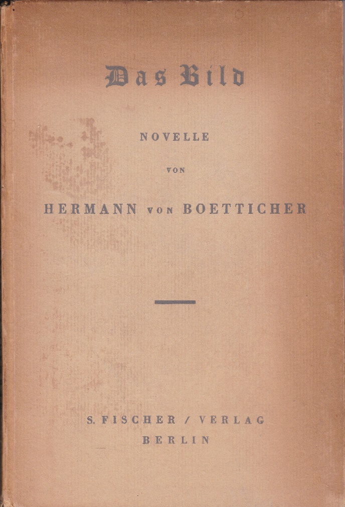 BOETTICHER, Hermann: Das Bild. Novelle. 1.-3.Tsd. Berlin: S.Fischer. 1924. Gr.8°. 85 S. Original-Pappband mit Rücken- und Deckeltitel. Einband etwas gebräunt und berieben, sonst gut erhalten. EA. Beck 210.