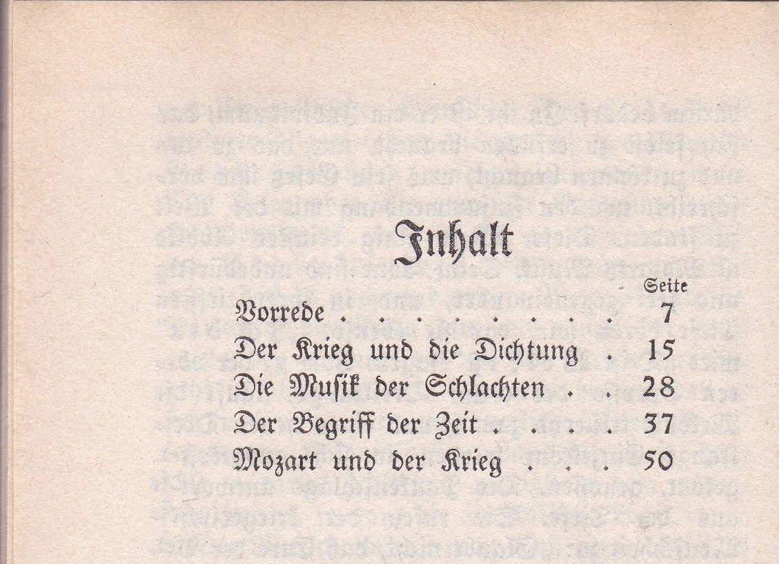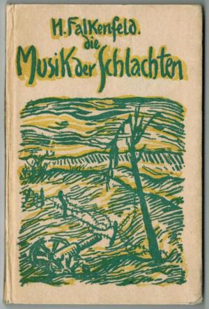 FALKENFELD, Hellmuth: Die Musik der Schlachten. Aufsätze zur Philosophie des Krieges. (Mit Beilagen). Konstanz: Reuß & Itta. (1916). Kl.8°. 16 x 10,5 cm. 63 S. Original Pappband mit Rücken- und illustriertem Deckeltitel (Kasia von Szadurska). Etwas berieben, Ecken leicht gestaucht. Vorsätze etwas randgegilbt, Exlibris auf Vorsatz, insgesamt guter Zustand. (= Die Zeitbücher, 49). Erstausgabe. – Enthält: Der Krieg und die Dichtung. Die Musik der Schlachten. Der Begriff der Zeit. Mozart und der Krieg. – Beiliegen ein gefalteter Zeitungsausschnitt mit einer Rezension vom 27.12.1915 (Der Zeitgeist / Beiblatt zum „Berliner Tageblatt“) und eine Postkarte: Soldat in Uniform. – „Hellmuth Falkenfeld (* 21. März 1893 in Fürstenwalde/Spree; † 1954 in New York City) war ein deutscher Philosoph und Hörspielautor… Er meldete sich 1914 als Kriegsfreiwilliger im Ersten Weltkrieg, obschon er ein Pazifist war.“ (wikip.)