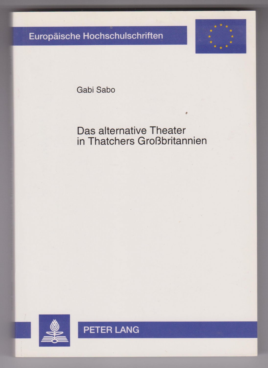 SABO, Gabi: Das alternative Theater in Thatchers Großbritannien. Frankfurt/Main: Peter Lang Verlag. (1995). (21 x 14,8 cm). 300 S. Original-Karton mit Rücken- und Deckeltitel. Einband mit geringen Gebrauchsspuren, sonst wohlerhalten. Insgesamt guter bis sehr guter Zustand. (= Europäische Hochschulschriften, Reihe 30: Theater-, Film- und Fernsehwissenschaften, Band 61).