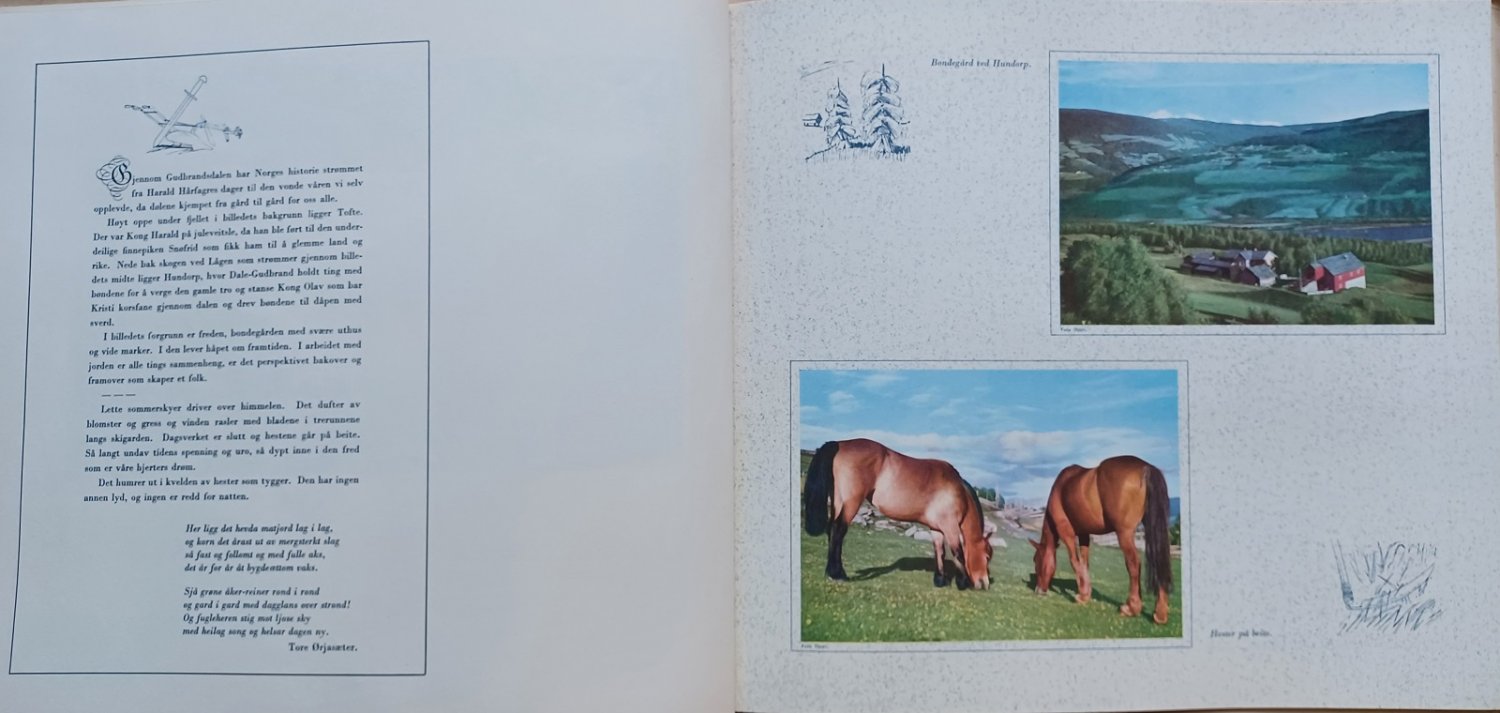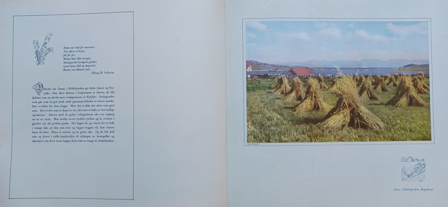 SCHMITT INGEBRETSEN, Herman: Vart Norge. Fra Fjord Til Fjell. Oslo: Eberh.B.Oppi.A.s. – Kunstforlag. [1944]. ca. 27,5 x 30 cm. (40) S. Original illustrierter Kartoneinband mit Deckeltitel. Einband etwas gerändert. Vorsätze etwas stockfleckig. Sonst guter Zustand. In norwegischer Sprache. Bildband mit farbigen Abbildungen der Fjordlandschaft Norwegens und mit 4 montierten farbigen Abbildungen auf den Innendeckeln mit handschriftlichen Bilduntertiteln.