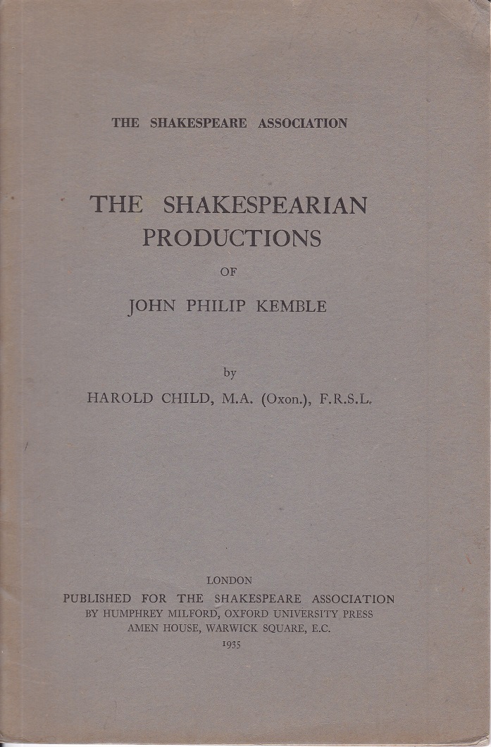 KEMBLE, John Philip: The Shakespearian Productions. London: Milford, Oxford University Press. 1935. gr.8°. 22 S. Original Karton mit Deckeltitel, guter Zustand / Original boards, good condition. (= The Shakespeare Association).