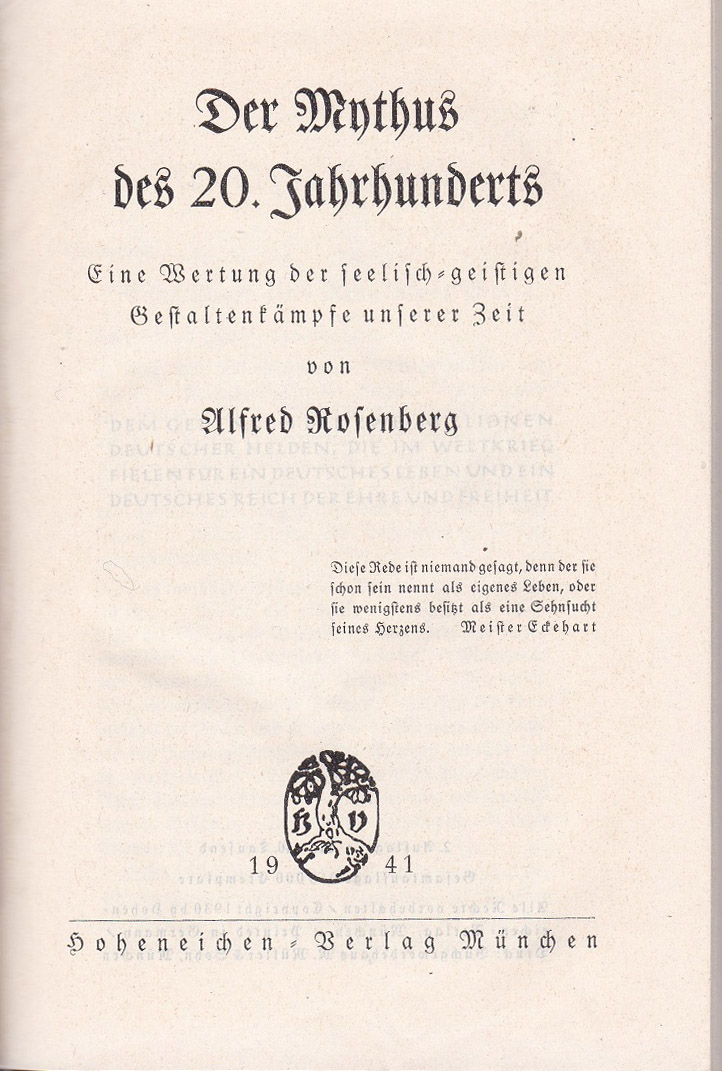 ROSENBERG, A.: Der Mythus des 20.Jahrhunderts.