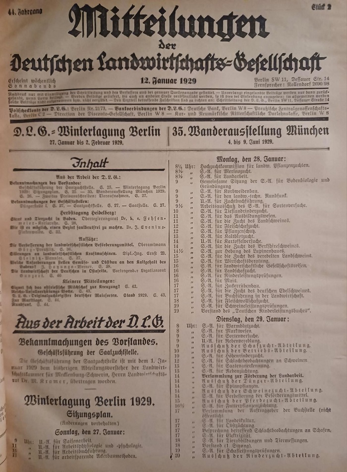 Mitteilungen der Deutschen Landwirtschafts-Gesellschaft. 1929.