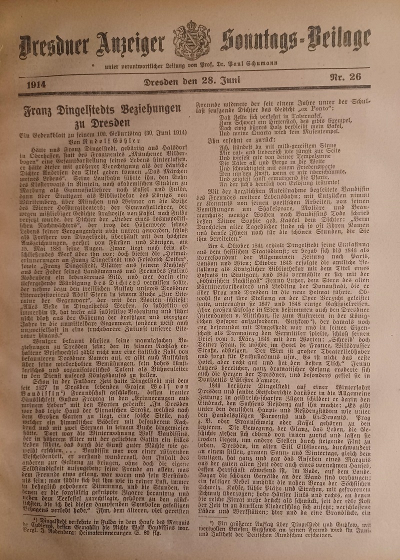 SCHUMANN, Dresdner Anzeiger. 14. Jahrgang 1914.