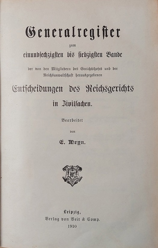 Entscheidungen des Reichsgerichts in Civilsachen. Generalregister zum 61. bis 70. Bande Leipzig: Veit 1910. XXVIII,724 S. OHLdr. mit ggpräg. RT., etwas berieben, papierbed. leicht gegilbt, sonst (II) ######################## LIEBE KUNDEN, WIR MACHEN UNSERE JÄHRLICHE WEIHNACHTSAKTION MIT VOLLEN 30% RABATT AUF DEN GESAMTEN BESTAND UND FREUEN UNS AUF IHR INTERESSE. (Die Ermäßigung ist nun bereits im angezeigten Preis enthalten) #########################