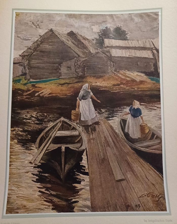 Winter / Im lettgallischen Dorf / Frühlingslandschaft / Schiffe im Rigaer Hafen / Pariser Boulevard / Rathausplatz in Riga / Birken und Häuser / Frühling / Santa Maria della Salute in Venedig / Piazzetta in Venedig / Erinnerung an Spanien / Venedig. – – – ACHTUNG! Dieses Buch kann wegen seines Gewichts oder seiner Größe nur als PAKET verschickt werden. Innerhalb Deutschlands 5,80 Euro. (Portokosten ins Ausland bitte erfragen.) / ATTENTION! Due to its weight or size this book can only be sent as a PARCEL. Within Germany 5,80 Euro (For shipment abroad please ask.)