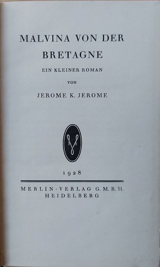 JEROME, Jerome K.: Malvina von der Bretagne. Ein kleiner Roman. Übersetzung aus dem Englischen von Hermynia Zur Mühlen. Heidelberg: Merlin-Verlag. 1928. Kl.8°. 133 (1) S. Original Leinwand mit Rücken- und Deckeltitel, Kopffarbschnitt. Einband leicht berieben, Deckeltitel unten mit minimaler Stauchung. Montiertes Exlibris (Kaufhaus des Westens) und blasser Stempel auf Vorsatz, kleiner Kontrollstempel auf fliegendem Vorsatz hinten, sonst gut erhalten. Montiertes Exlibris (Kaufhaus des Westens) auf Vorsatz. ######################## LIEBE KUNDEN, WIR MACHEN UNSERE JÄHRLICHE WEIHNACHTSAKTION MIT VOLLEN 30% RABATT AUF DEN GESAMTEN BESTAND UND FREUEN UNS AUF IHR INTERESSE. (Die Ermäßigung ist nun bereits im angezeigten Preis enthalten) #########################