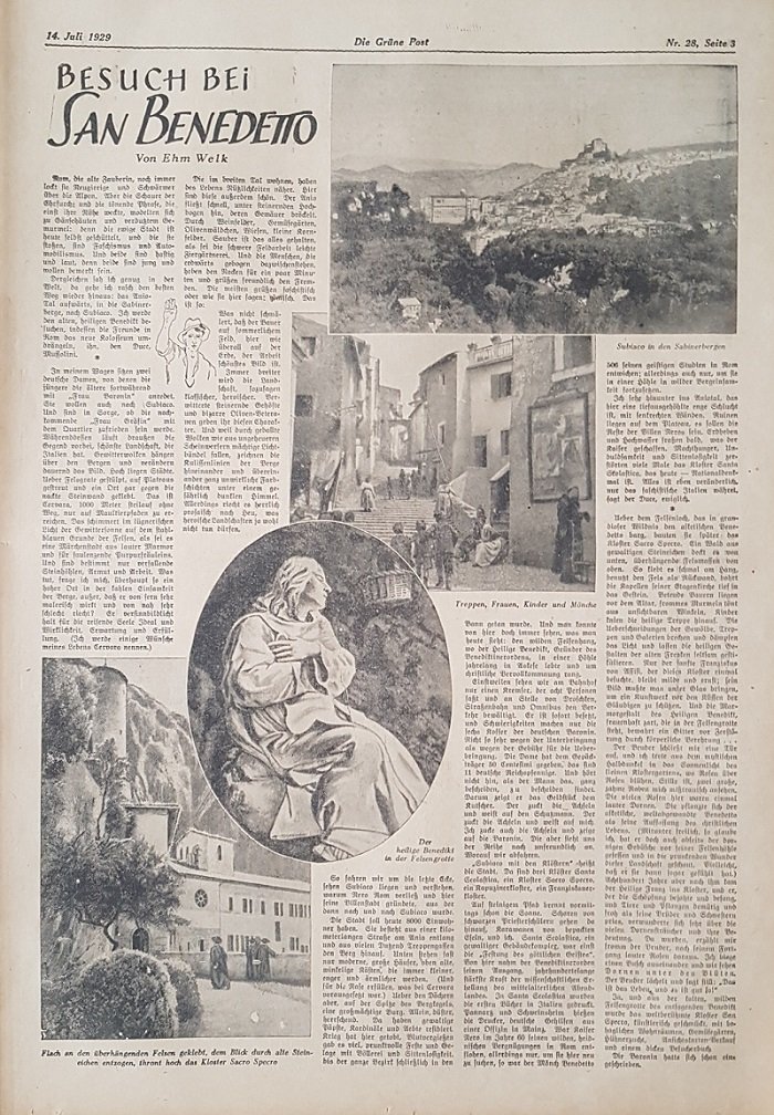 Die vorliegende Ausgabe der einstigen Berliner Sonntagszeitung (Ullstein Verlag) beinhaltet interessante, ganzseitige Reportagen wie „Indien: 3. Alarmstufe“ oder „Besuch bei San Benedetto“ (Italienbesuch, verfasst von Ehm Welk), beide jeweils mit 3-4 fotografischen Abbildungen. Daneben einzelne längere Texte zum politischen Geschehen im damaligen Deutschen Reich. Auch ein längerer Beitrag zu den Passionsspielen in Oberammergau ist enthalten, mit mehreren Abbildungen. Zudem ist eine Vielzahl literarischer Texte wie Romanserien und kurze Einzeltexte zu finden. In dieser Ausgabe beispielsweise: Wolfgang Frank – Aus dem Leben dreier Taugenichtse. Eine interessante Rubrik sind die „Moment-Aufnahmen“. Hier wurden zeitgenössisch bedeutende Persönlichkeiten mit Abbildungen und Beitexten in kurzer Form porträtiert. Enthalten sind weitere unterhaltende Artikel sowie zahlreiche zeitgenössische Werbeanzeigen (teils halbseitig). So etwa für die Haus Neuerburg GmbH (Zigarettenmarke Overstolz), die ehemaligen Brennabor-Werke in Brandenburg an der Havel (Marke: Juwel), Continental oder Reemtsma (Marke: Ova). Heute äußerst seltene Zeitungsausgabe aus der späten Weimarer Republik! – – – ACHTUNG! Dieses Buch kann wegen seines Gewichts oder seiner Größe nur als PAKET verschickt werden. Innerhalb Deutschlands 5,80 Euro. (Portokosten ins Ausland bitte erfragen.) / ATTENTION! Due to its weight or size this book can only be sent as a PARCEL. Within Germany 5,80 Euro (For shipment abroad please ask.)