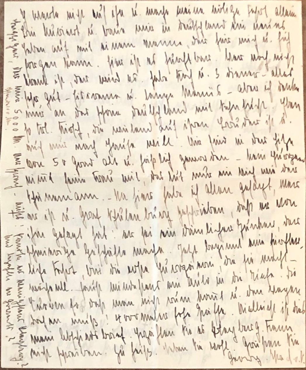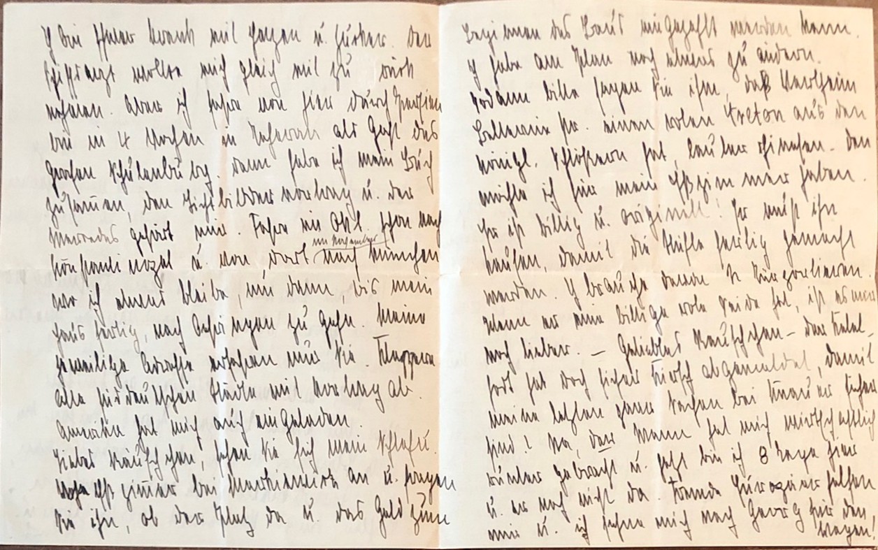 (Persienreise 1924-1925). – NATHUSIUS, Annemarie von: „Liebe Frau Rausch“, handschriftlicher Brief aus Bushir, datiert auf 9.8.1924. (Original-Brief der Autorin, geschrieben von ihrer großen Persienreise 1924-1925). 1924. (ca. 21,5 x 17,5 cm). 4 Seiten. Mit Original-Briefumschlag, dieser gestempelt. Original-Brief, vierseitig, sehr dicht mit Tinte beschrieben. Papier gefaltet, Kuvert mit Abriß, wohlerhalten. Die Autorin Annemarie von Nathusius war durch ihr schriftstellerisches Engagement für die Rechte der Frauen im Deutschland der Kaiserzeit wohlbekannt. Sie hat im Jahr 1924 eine große Persienreise angetreten und ist dort sogar mit einem Automobil gereist, was zumal für eine Frau damals alles andere als gewöhnlich war. Sicher war dies auch eines ihrer Ziele, eben sichtbar als Frau eine derartige Reise zu unternehmen und über ihre Erfahrungen publizistisch zu berichten, wie in einzelnen Zeitungsartikeln auch geschehen. Im Jahr ihrer Rückkehr nach Berlin, 1925, ist sie plötzlich verstorben. Annemarie von Nathusius hat auf ihrer großen Reise im Orient geschrieben und korrespondiert, so auch mit einer ihr verbundenen Berliner Familie. Hier liegt ein Stück aus dieser ganz besonderen Korrespondenz vor, welches im Nachlass jener Altberliner Familie erhalten geblieben ist. Der Brief ist auf vier Seiten dicht beschrieben, er umfasst etwa 74 Zeilen. Im Briefkopf wurde er auf den 9. August 1924 datiert. Auch hat die Autorin dort angegeben daß der Brief in Bushir (heute Iran)geschrieben wurde. Im Brieftext erwähnt sie dann etwa Teheran, Ambassade Allemande und weitere Fahrtdetails. Der Brief wurde von ihr mit „A v N“ signiert. Sowohl das Briefpapier als auch der ebenfalls erhaltene Originalumschlag enthalten ein geprägtes Wappen, wohl das Familienwappen der Baronin von Nathusius. Der Umschlag enthält rückseitig mehrere Stempel, er wurde damals mit „25.08.1924 Port Said“ gestempelt, vermutlich die damalige Postroute für internationale Post in der Region nach dem Ersten Weltkrieg. Ein gleich mehrfach beeindruckendes Stück von einer einst berühmten deutschen Schriftstellerin im Einsatz für die gesellschaftliche Position der Frauen und von einer zeitgenössisch höchst ungewöhnlichen Reise bis nach Persien. Ein literaturgeschichtliches Unikat!