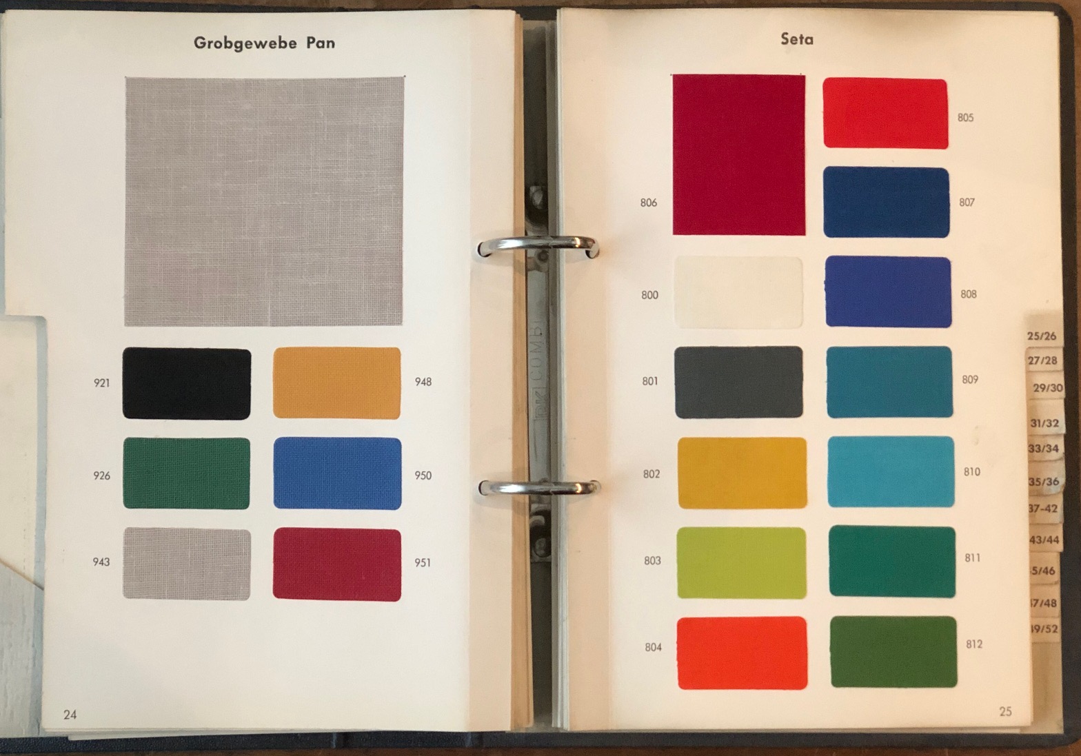WILH. VALENTIN KG (Berlin/West): Bucheinbandstoffe. Musterbuch, Mai 1967. (Firmenkatalog mit zahlreichen Mustern für Bucheinbände). Berlin/West: Wilh. Valentin. 1967. (ca. 26 x 21 cm). 52 S. mit Mustern, Preisliste beiliegend. Original-Musterbuch mit Titel auf Rücken und Deckel. Deckel etwas fleckig, sonst gut erhalten. Der sehr umfangreiche Katalog enthält 52 kartonierte Seiten mit je ca. 8-12 Mustern. Die Muster umfassen alle möglichen Varianten von Leinen, Gewebe, Kaliko, Kunstleder und Büchertuch. Im Innendeckel ist eine mehrseitige Preisliste mit Stand Mai 1967 beiliegend. Einige wenige der Proben wurden entfernt, insgesamt sind wohl mehr als 500 Proben im Katalog enthalten. Seltenes Musterbuch der einstigen Westberliner Firma Wilh. Valentin. ################## LIEBE KUNDEN, WIR MACHEN UNSERE JÄHRLICHE FRÜHLINGSAKTION MIT 30% RABATT AUF DEN GESAMTEN BESTAND. DIE ERMÄSSIGUNG GILT AB SOFORT, DER RABATT WIRD NACH IHRER BESTELLUNG VON DEN PREISEN ABGEZOGEN UND SIE ERHALTEN DEN ENDBETRAG VON UNS. ÜBER IHR INTERESSE AN UNSEREN SELTENEN STÜCKEN WÜRDEN WIR UNS WIE JEDES JAHR SEHR FREUEN ###################