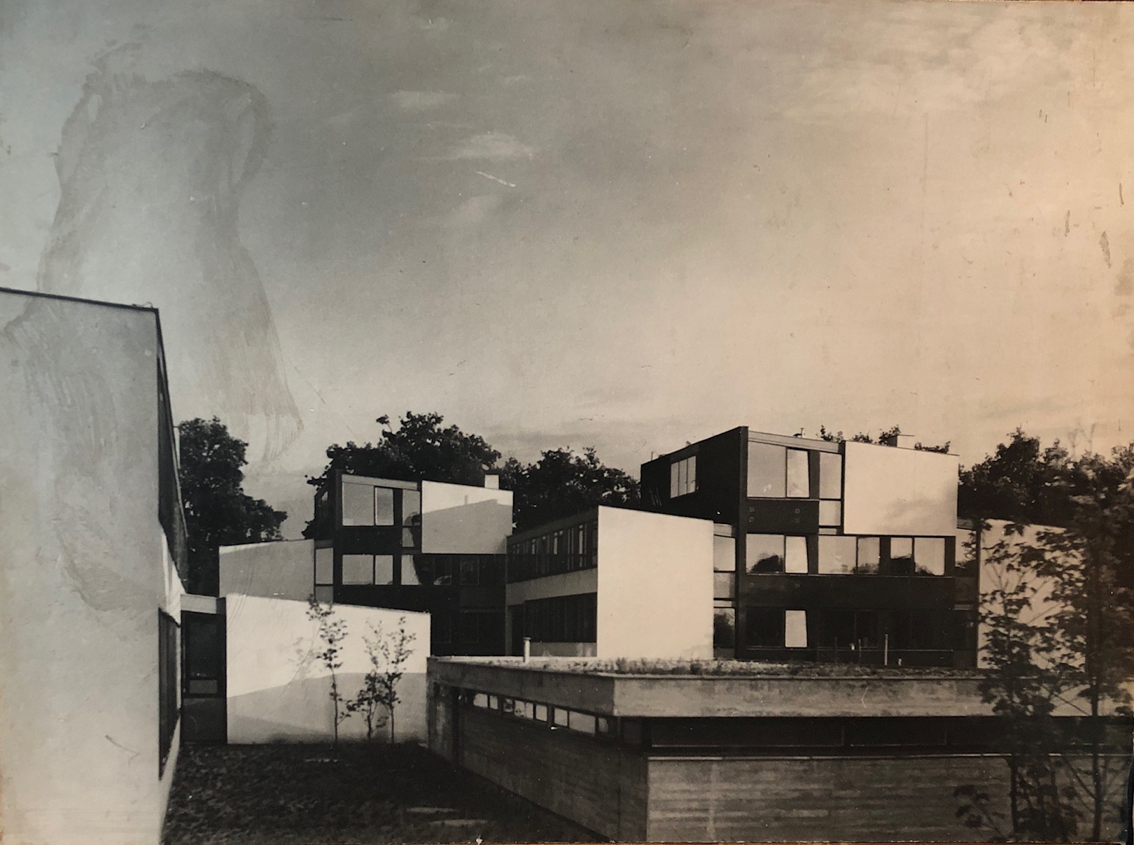 FEHLING, Original-Ausstellungstafel zu einem Wohnbau im Stil der Nachkriegsmoder