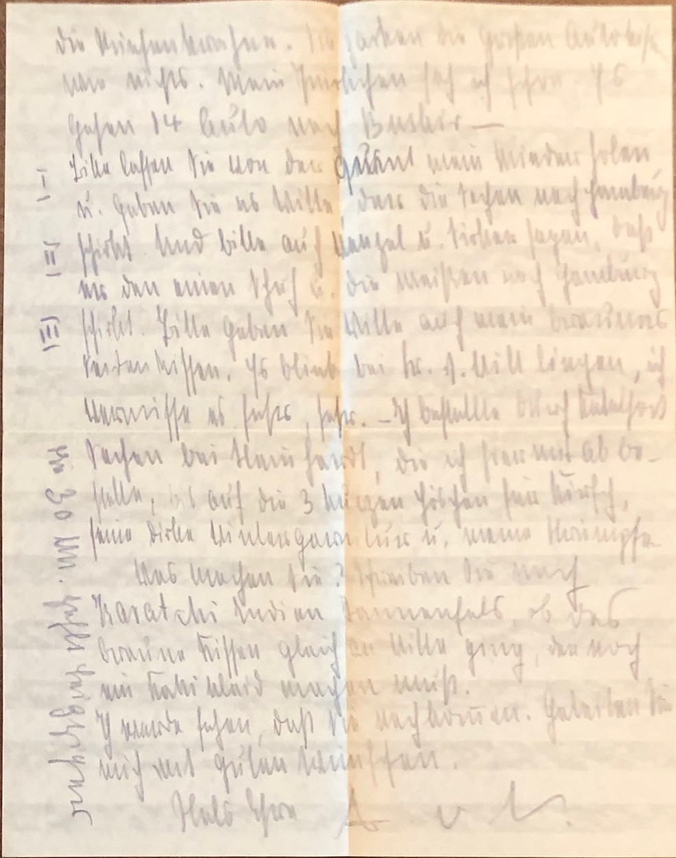 (Persienreise 1924-1925). – NATHUSIUS, Annemarie von: „Meine liebe Frau Rausch“, handschriftlicher Brief an Bord der Tannenfels, datiert auf 20.06.1924. (Original-Brief der Autorin, geschrieben von ihrer großen Persienreise 1924-1925). 1924. (ca. 28 x 22 cm). 2 Seiten. Mit Original-Briefumschlag, dieser gestempelt. Original-Brief, zweiseitig, überaus dicht mit Bleistift beschrieben. Papier gefaltet, Kuvert mit Abriß, wohlerhalten. Die Autorin Annemarie von Nathusius war durch ihr schriftstellerisches Engagement für die Rechte der Frauen im Deutschland der Kaiserzeit wohlbekannt. Sie hat im Jahr 1924 eine große Persienreise angetreten und ist dort sogar mit einem Automobil gereist, was zumal für eine Frau damals alles andere als gewöhnlich war. Sicher war dies auch eines ihrer Ziele, eben sichtbar als Frau eine derartige Reise zu unternehmen und über ihre Erfahrungen publizistisch zu berichten, wie in einzelnen Zeitungsartikeln auch geschehen. Im Jahr ihrer Rückkehr nach Berlin, 1925, ist sie plötzlich verstorben. Annemarie von Nathusius hat auf ihrer großen Reise im Orient geschrieben und korrespondiert, so auch mit einer ihr verbundenen Berliner Familie. Hier liegt ein Stück aus dieser ganz besonderen Korrespondenz vor, welches im Nachlass jener Altberliner Familie erhalten geblieben ist. Der Brief ist auf zwei Seiten dicht beschrieben, er umfasst etwa 40 Zeilen. Im Briefkopf wurde er auf den 20. Juni 1924 datiert. Auch hat die Autorin dort angegeben daß der Brief „an Bord der Tannenfels“ geschrieben wurde, sehr wahrscheinlich das Schiff ihrer Überfahrt. Im Brieftext ist dann vielfach von Reisedetails die Rede, so wird etwa der Ort „Bushir“ (heute in Iran) gleich mehrere Male von ihr erwähnt, da dieser vermutlich eines ihrer Reiseziele gewesen ist. Der Brief wurde von ihr mit „A v N“ signiert. Sowohl das Briefpapier als auch der ebenfalls erhaltene Originalumschlag enthalten ein geprägtes Wappen, wohl das Familienwappen der Baronin von Nathusius. Der Umschlag enthält rückseitig den Absender „SS. Tannenfels – Karachi Indien“. Vermutlich hat das Schiff dort angelegt oder hatte Indien als Ziel der Überfahrt, gestempelt wurde er mit Datum 23.06.1924. Ein gleich mehrfach beeindruckendes Stück von einer einst berühmten deutschen Schriftstellerin im Einsatz für die gesellschaftliche Position der Frauen und von einer zeitgenössisch höchst ungewöhnlichen Reise bis nach Persien. Ein literaturgeschichtliches Unikat!