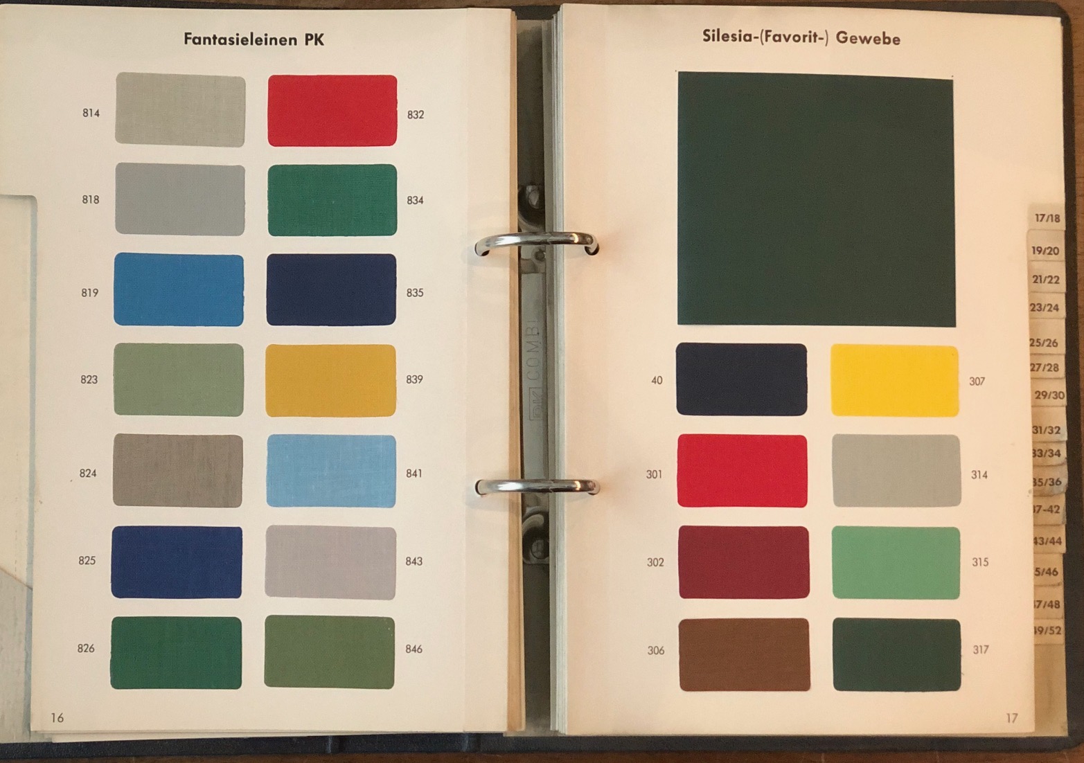 WILH. VALENTIN KG (Berlin/West): Bucheinbandstoffe. Musterbuch, Mai 1967. (Firmenkatalog mit zahlreichen Mustern für Bucheinbände). Berlin/West: Wilh. Valentin. 1967. (ca. 26 x 21 cm). 52 S. mit Mustern, Preisliste beiliegend. Original-Musterbuch mit Titel auf Rücken und Deckel. Deckel etwas fleckig, sonst gut erhalten. Der sehr umfangreiche Katalog enthält 52 kartonierte Seiten mit je ca. 8-12 Mustern. Die Muster umfassen alle möglichen Varianten von Leinen, Gewebe, Kaliko, Kunstleder und Büchertuch. Im Innendeckel ist eine mehrseitige Preisliste mit Stand Mai 1967 beiliegend. Einige wenige der Proben wurden entfernt, insgesamt sind wohl mehr als 500 Proben im Katalog enthalten. Seltenes Musterbuch der einstigen Westberliner Firma Wilh. Valentin. ################## LIEBE KUNDEN, WIR MACHEN UNSERE JÄHRLICHE FRÜHLINGSAKTION MIT 30% RABATT AUF DEN GESAMTEN BESTAND. DIE ERMÄSSIGUNG GILT AB SOFORT, DER RABATT WIRD NACH IHRER BESTELLUNG VON DEN PREISEN ABGEZOGEN UND SIE ERHALTEN DEN ENDBETRAG VON UNS. ÜBER IHR INTERESSE AN UNSEREN SELTENEN STÜCKEN WÜRDEN WIR UNS WIE JEDES JAHR SEHR FREUEN ###################